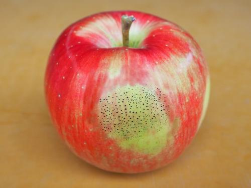 500円玉ぐらいの範囲の、黒いポツポツとした点。 内部に浸透するような、腐れにつながる病気ではありません。 そのまま食べても問題はありません。
